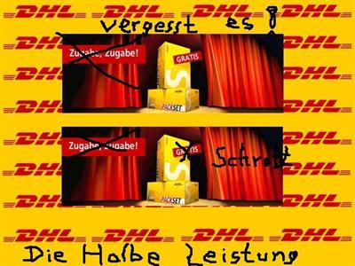 Versand "DHL": Es wird Zeit vor dieser Art von Versand ins Ausland abzuraten. Seit 21. Juni 2006 ist ein Paket aus Deutschland mit DHL nach La Paz in Bolivien unterwegs. DHL hat für den Versand etwa 100 Euro kassiert. Bisher ist das Paket nicht aufgetaucht, etwa 400 eMails und zwei Nachforschungsaufträge sind von DHL nicht beantwortet worden. Der Paketinhalt und das Porto wurden von DHL bisher nicht ersetzt. Von Service, Kompetenz oder gar "Global Player" kann hier nicht die Rede sein. Wir wollen keine Zugabe und wir wissen auch nicht, auf welcher Rechtsgrundlage man in Deutschland "GRATIS" Porto kassieren kann. Wir raten jedem davon ab, ein Paket mit DHL zu versenden. Für uns bleibt der Vorhang für immer geschlossen.