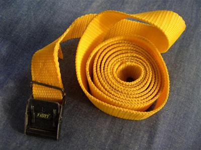"Fasty" Packband: Packband der schwedischen Firma "Fasty". Extrem stabiles Band und nichtrostende Schnallen (hing ein halbes Jahr unter unserem Bus). Belastbar bis 340 Kilogramm Zug. Hier stimmt das Preisleistungsverhältnis.