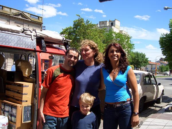 Zwischendurch mal eine Stadt in der wir Pause machen und ein paar Lebensmittel einkaufen. Katrin will zum grösseren Supermarkt auf der linken Strassenseite ich aber habe keine Lust links abzubiegen und halte rechts da gibt es auch einen Supermarkt. Ich fahre ungern hier in den Städten da ich es noch nicht kapiert habe welche Strassen Einbahnstrassen sind - und ich bin auch schon in eine Einbahnstrasse genagelt. Na Katrin und Elias in den Supermarkt, ich bleibe beim Auto. Nach einiger Zeit entscheide ich mich doch vor den Supermarkt auf der anderen Strassenseite zu fahren wegen den schweren Einkaufstaschen. Ausserdem ist da auch ein windstiller Innenhof und da kann ich das Vorzelt trocknen - nebenbei lese ich den Reiseführer... Katrin kommt nicht. Braucht sie wieder so lange oder hat das Ding einen zweiten Ausgang. Ich beschliesse nochmal um die Ecke zum anderen Supermarkt zu schauen. Von Weitem sehe ich Katrin völlig aufgelöst dort stehen. Sie war doch in den kleineren Supermarkt gegangen, ohne dass ich es gemerkt hatte. Als sie nach dem Einkauf wieder heraus kam war ich weg... Katrin hatte sich schon in die wildesten Fantasien hereingesteigert: Polizeiaktion, &UUml;berfall oder Ende der Beziehung. Auf jeden Fall war Katrin und die Angestellten vom Supermarkt sichtlich erleichtert als sie mich sahen. Die Angestellten haben Katrin seelisch und mit Cola und Sandwich unterstützt.
