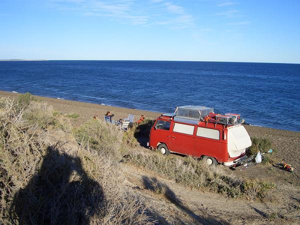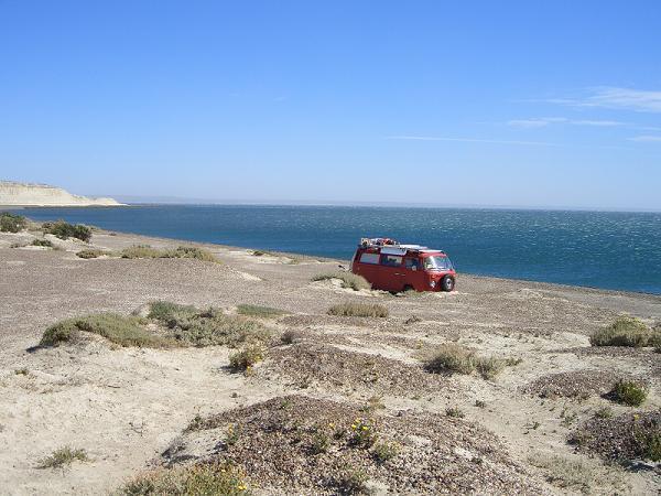 Nach zwei Tagen Fahrt kommen wir in der Bucht vor der Halbinsel Valdes an. Hier soll es die Wale geben. Und der Platz ist auch schön und menschenleer aber sehr windig. Aber Wale haben wir keine gesehen.