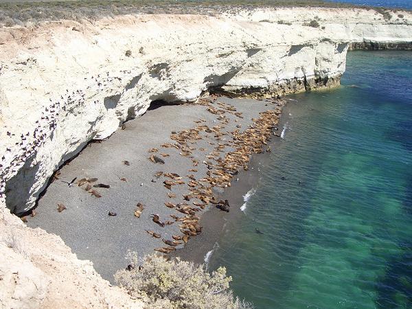 Ein paar Kilometer weiter gibt es in einer Bucht eine Kolonie von Seelöwen zu sehen - diesmal wissen wir was für Tiere es sind, weil es auf der Strassenkarte eingetragen ist - vielleicht sind es aber auch als Seelöwen verkleidete Robben :-)