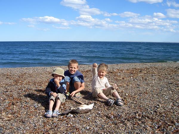 Dafür gibt es hier in der Bucht jede Menge netter Leute aus Deutschland und aus der Schweiz. Wir unterhalten uns viel und bekommen einige wertvolle Tipps. Elias hat ein paar Kinder zum Spielen gefunden und tummelt sich mit ihnen den ganzen Tag am Strand herum. Da gibt es zwar keine Wale zu sehen, dafür aber tote Seevögel und Muscheln :-0