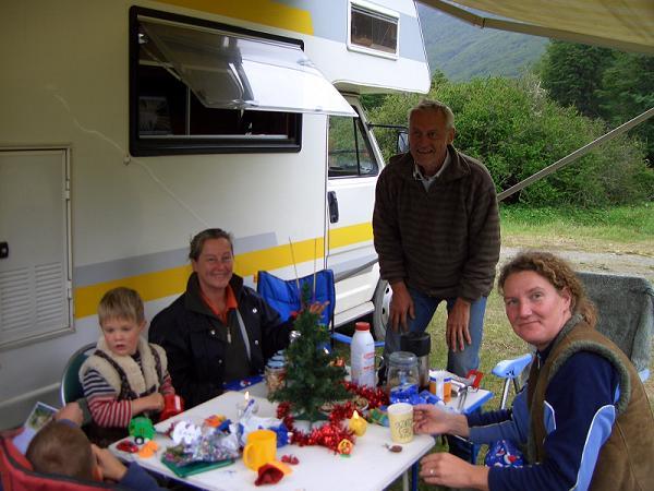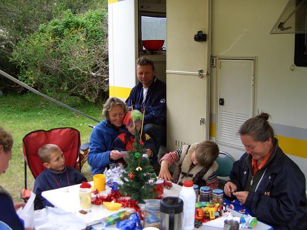 Am 25.12. kamen dann noch Werner und Isolde - zwei Berliner auch unterwegs in einem VW-Bus. Isolde hatte die Idee mit den Geschenken und so gab es für jeden ein Geschenk zum Auspacken.
