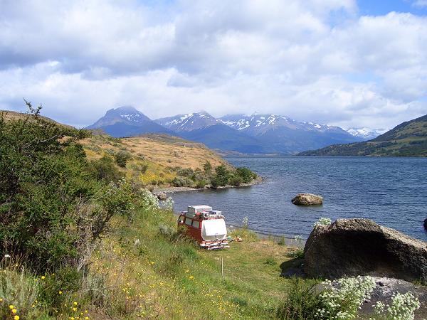 Von Ushuaia, dem südlichsten Punkt unserer Reise, fahren wir wieder Richtung Norden und biegen nach 300 Kilometern westlich in den chilenischen Teil Feuerlands ab. Nach weiteren 150 Kilometern erreichen wir Povenir, die grösste chilenische Stadt Feuerlands mit etwa 5000 Einwohnern. Zum Glück gibt es eine Bank wo wir die ersten chilenischen Pesos bekommen. Übernachten wollten wir eigentlich an einem See unweit der Stadt, aber leider ist alles eingezäunt.
