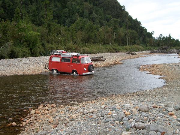 Wir müssen da die Strecke vorher schon genau anschauen, Steine wegräumen und grosse Löcher füllen. Aber dann geht es vollepulle überall hindurch oder herauf. Kein Wassergraben scheint zu tief und keine Geröllhalde zu steil. Der Bus ist flink wie eine Bergziege. Man braucht wirklich kein zigtausend Euro teures Supermobil - 30 Jahre alte und solide Technik reicht aus.
