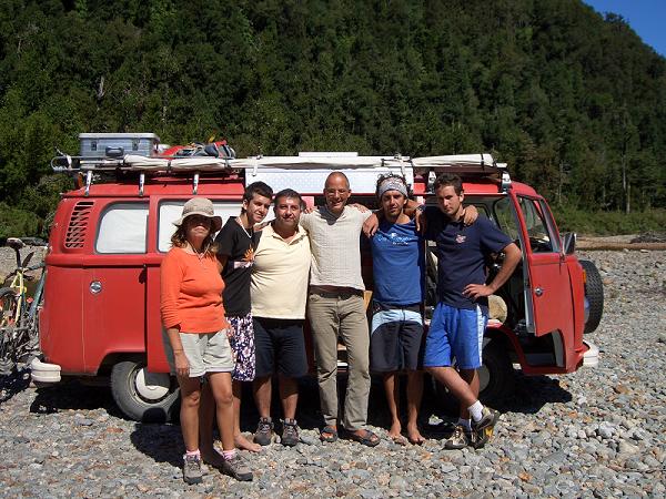 Trotzdem - oder vielleicht auch gerade deshalb - sind die Leute freundlich und hilfsbereit und oft bekommen wir etwas geschenkt. Auf einer Kiesbank im Nationalpark Queulat sitzen wir abends mit einer chilenischen Familie aus der Gegend von Santiago zusammen. Es wird Gitarre gespielt und gesungen. Die Chilenen spendieren Wein und Whisky. Wir erfahren viel über das Leben hier und die Chilenen sind sehr an Deutschland interessiert. Für alle ein schöner, feuchtfröhlicher Abend. Am nächsten Tag bekommen wir zum Abschied sogar noch eine Flasche Wein geschenkt - tausend Dank noch mal dafür.