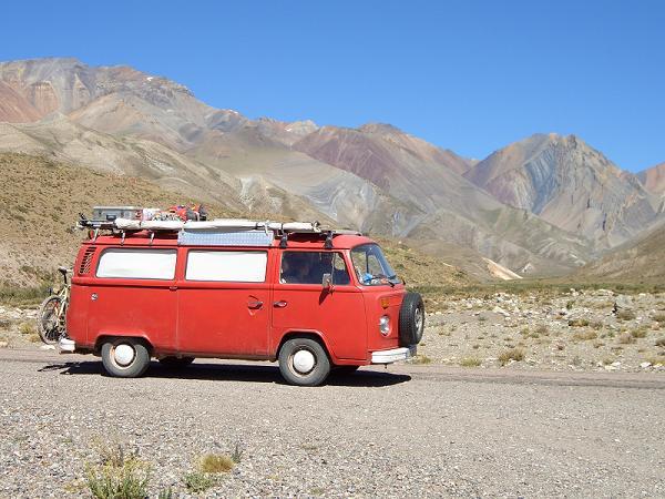Bäche und Pfützen sind mit einer Eisschicht überzogen, aber die aufgehende Sonne wärmt unseren Bus schnell auf. Hätten wir vielleicht doch eine Heizung einbauen sollen? Richtung Norden geht es weiter durch den Canyon des Rio Atuel.