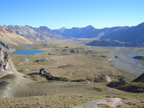 Im Tal sanfte Hügel, eine Lagune und ein Fluss im breitem Kiesbett. Eine perfekte Kulisse für einen Science Fiction - Film. Wir geniessen den Sonnenuntergang und verbringen die Nacht am Rande des Tals. Mit dem Verschwinden der Sonne sinken die Temperaturen rapide. Am nächsten Morgen ist das Kondenswasser an den Innenseiten der Scheiben gefroren - das Thermometer zeigt minus zwei Grad an.