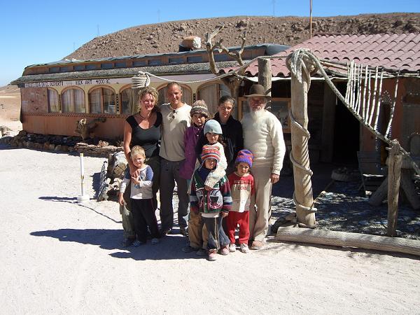 Nach knapp 100 Kilometern treffen wir auf Andrea und Alexis mit ihren 4 Kindern. Sie wohnen hier seit knapp 14 Jahren. Sie wollten einfach ausprobieren in der Wüste zu leben. Inzwischen haben sie das Land vom chilenischen Präsidenten geschenkt bekommen. Irgendwie haben sie es geschafft einen alten Eisenbahnwagon aus dem Jahre 1928 hier hin transportieren zu lassen. Und mittlerweile haben sie auch noch weitere Gebäude aufgebaut. Die Beiden laden uns ein, ein paar Tage zu bleiben und uns an die Höhe zu gewöhnen. Immerhin sind wir hier schon auf etwa 3000 Metern Höhe.