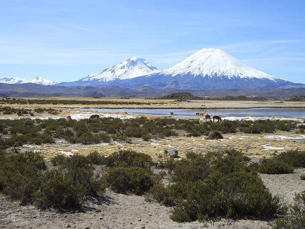 Nach ein paar Tagen geht es weiter. Zum Abschied bekommen wir noch Cocablätter und Cocatee geschenkt. Das ist gut gegen die Höhenkrankheit. Putre ist ein schöner Ort auf 3600 Metern. Komischerweise ist es hier viel grüner als auf 3000 Metern. Wir kaufen ein und verbringen die Nacht hier.