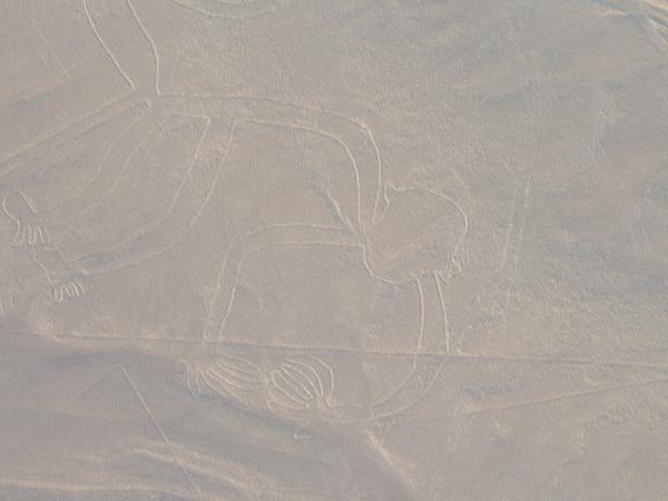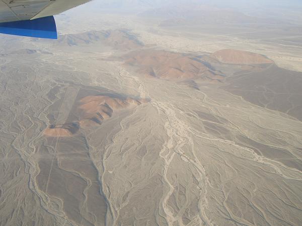 Im Vergleich zu Cusco ist es hier unten an der Küste seit langem endlich wieder sch&oouml;n warm. In Nazca wollen wir uns die präinkaischen Wüstenbilder ansehen. Bilder die in den Wüstensand gescharrt sind - mehrere tausend Jahre alt. Das geht am Besten mit mit einem kleinen Flugzeug aus der Luft. Wir übernachten in einem Hotelgarten direkt am Flughafen. Interessant für Elias die startenden und landenden Flugzeuge anzusehen. Den Rest des Tages verbringen wir am Hotelpool. Am nächsten Tag geht es in die Luft. Das Fliegen ist fast spannender als die Linien selbst. Noch nie sind wir in so einer kleinen wackeligen Maschine geflogen.