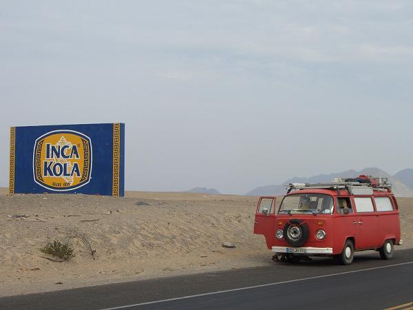 Alle Reisenden warnen uns vor den vielen Polizeikontrollen um Lima herum. Deshalb fahren wir Sontags. Und wir haben Glück, auch die Polizei arbeitet an diesem Tag nicht viel. Bei uns ist der Montag der Tag der Polizei. Schon am frühen Morgen klopfen zwei Polizisten an den Bus und wecken uns - es ist 5 Uhr 30. Warscheinlich wollten sie nur nach dem Rechten sehen, weil sie unseren Bus abseits der Strasse entdeckt hatten.