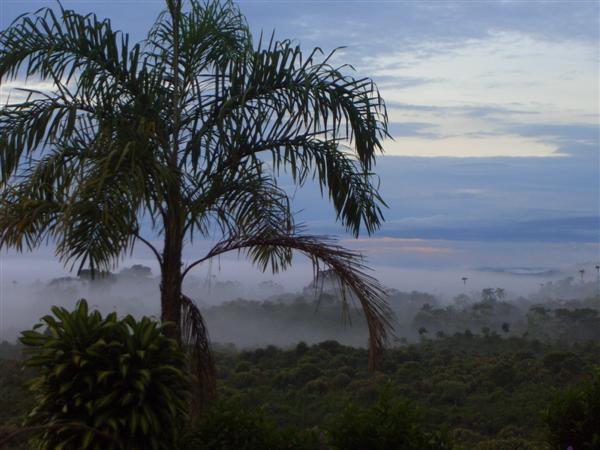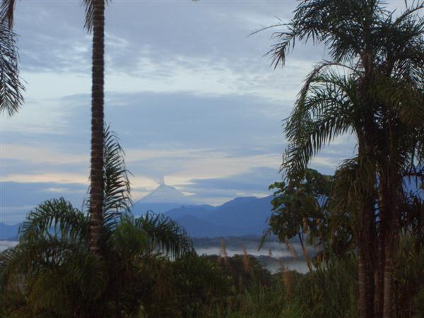 Morgennebel liegt über dem Dschungel und in der Ferne raucht der Vulkan Wolken in den Himmel. Heute ist es ungewöhnlich ruhig auf der Veranda. Beim Frühstück erfahren wir, das die Strasse in Banos durch ein Erdrutsch gesperrt ist. Ausserdem streiken die Anwohner und Hotelbesitzer in Banos - die Strasse in Richtung Westen ist komplett abgeriegelt.