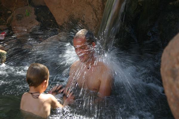 Die Landschaft ist karg und trocken, da sind die Thermen von Fiambala eine willkommene Abwechslung. Die naturbelassene Anlage liegt in einem felsigen Seitental auf 2300 Metern Höhe. 10 verschiedene Becken aus Natursteinen, mit Wassertemperaturen von 28 bis 43 Grad, sind durch kleine Wasserfälle verbunden. Wohl eine der schönsten Thermen Argentiniens. Schade nur, dass der Zonda kräftig wehte und so die Lufttemperaturen innerhalb weniger Stunden von 20 auf über 36 Grad anstiegen. Kein wirklich richtiges Wetter für Thermen...