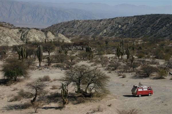 Nach langen Tagen endloser Fahrt durch eine karge, wüstenähnliche Gegend erreichen wir die wohl deutscheste Siedlung in Argentinien: Villa General Belgrano. 1932 kauften zwei Deutsche das gesamte Gebiet, parzellierten es und boten es in deutschsprachigen Ländern an. Angeblich leben, oder lebten, hier auch Überlebende des deutschen Kriegsschiffes Graf Spee, das sich 1940 im Rio de la Plata vor Montevideo selbst versenkt hatte. Heute gibt es hier alljährlich ein Oktoberfest mit Bier, Sauerkraut und Würstchen. Allerdings scheinen die Ausgewanderten vergessen zu haben, wie soetwas wirklich schmeckt.