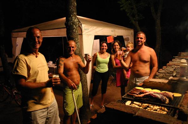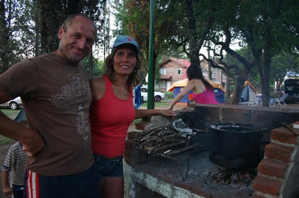 Jetzt im Januar ist der Campingplatz voll, die Argentinier haben Sommerferien. Kontakte knüpft man in Argentinien schnell, die Menschen sind hier sehr offen. Und beim Grillen können wir mittlerweile mit den Argentiniern mithalten. Um 23 Uhr ist das Asado fertig, es kann gegessen werden...