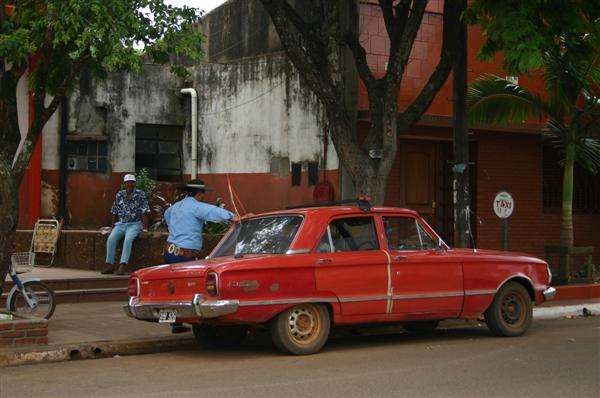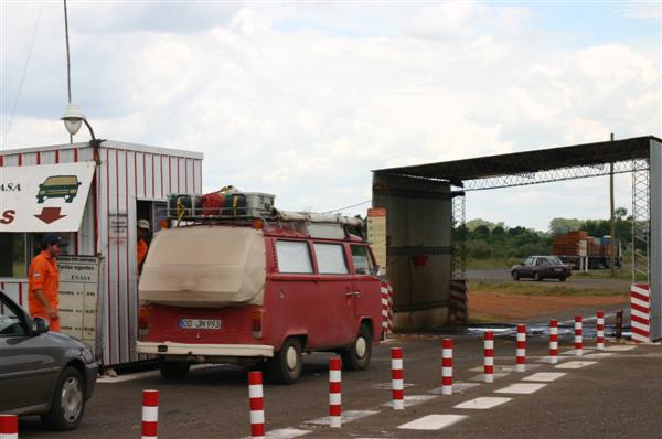 Wir rollen nach Concordia eine argentinische Grenzstadt zu Uruguay knapp 500 Kilometer nördlich von Buenos Aires. Es ist unerträglich schwühl. Während dem Fahren wird man quasi im eigenen Saft gekocht. Viel Motivation zum Fahren haben wir nicht mehr. Aber würden wir direkt nach Uruguay zum Strand fahren, würden uns zwei Dinge entgehen: die Wasserfälle von Iguazu und die sagenumwobene korrupte Polizei in Entre Rios und Misiones. 900 Kilometer einfache Strecke sprechen dagegen, die Neugier aber letztlich dafür. Und so katapultieren wir uns noch einmal vom Endpunkt unserer Reise in den äussersten Nordosten von Argentinien. Die schnurgerade Strasse vermittelt das trügerische Gefühl von Sicherheit aber schon nach etwa 80 Kilometern werden wir an einer Polizeikontrolle angehalten - logo! - haben ja auch ein ausländisches Kennzeichen. An den Papieren liegt es natürlich nicht, aber dem Kontrollposten entgeht nicht, das Katrin nicht angeschnallt ist, so wie fast alle Argentinier auch. Die Papiere werden vom kontrollierenden Polizisten eingezogen und in ein kleines Haus neben der Strasse getragen. Ich verstehe nur "erst Multa dann Papiere". Entnervt gehe ich in das Haus an der Strasse. Drinnen ein kahler Raum, ein Metallspint, ein Holztisch mit einem Taschenrechner und einem Stapel Papiere darauf. Am Tisch sitzen zwei Polizisten, der eine beobachtet durch eine grosse Panoramascheibe das Geschehen auf der Strasse, der andere reinigt sich gelangweilt seine Fingernägel mit einem Kugelschreiber. Sein Gesicht etwas zerknittert, aufgedunsen und verschwitzt. Er, Sackgesicht (Name von der Redaktion geändert), legt den Kugelschreiber beiseite und zeigt mir eine perfekt einlaminierte Liste mit kostenpflichtigen Vergehen. Der unterste Punkt heisst irgendetwas mit "über der Stossstange". Die Handbewegung von Sackgesicht unterstreicht es "die Anhängerkupplung ist hier nicht erlaubt, weil sie über die Stossstange ragt". Kostet 389 Peso, also zur Zeit etwa 86 Euro.