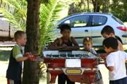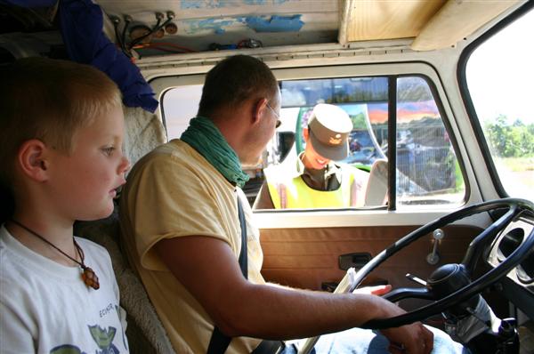 Endlos zieht sich die langweilige Strecke und wir beschliessen noch am gleichen Tag eine Nachtfahrt einzulegen, um Elias nicht zu sehr zu langweilen. Im Dunklen kommen wir an die Provinzgrenze zu Misiones und somit wieder an eine Polizeikontrolle. Erst werden wir durchgewunken, aber einem klugen Kopf sind dann doch die ausländischen Kennzeichen aufgefallen. Also rechts ranfahren. Die Papiere sind gefragt. Die sind in Ordnung, deshalb wird nach dem TÜV-Bericht gefragt. Was ein Witz - haben wir naürlich nicht. Ich gebe noch einmal den Fahrzeugschein, da ist ja auch ein Stempel drauf. Dann die Frage nach Feuerlöscher und Warndreieck. "Si", ham wir. Der Beamte will es tatsächlich sehen. Ich erinnere mich dunkel, das ich beides aus Gewichtsgründen im bolivianischen Hochland gegen Benzin eingetauscht habe und versuche den Beamten davon zu überzeugen, dass beide Sachen von seinen Landsleuten geklaut wurden. Im Übrigen haben wohl höchstens 0,00345% aller Argentinier diese Sachen im Auto. Hilft aber nichts, ich soll mit in sein Büro und eine Multa zahlen.