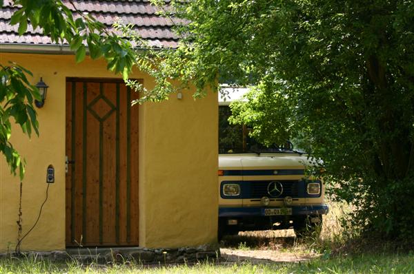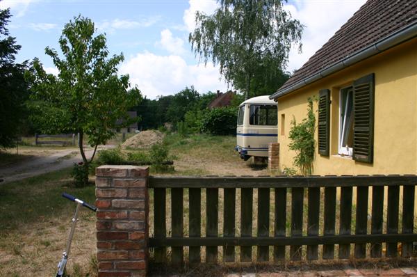Mitten im Naturpark, denn Natur ist uns auf der Reise wichtig geworden. Ein altes gelbes Haus, Kirschbäume im Garten und ein Bach in unmittelbarer Umgebung. Hier gibt es jede Menge Seen, Radwanderwege, Wanderwege und kleine hübsche Orte. Keine Industrie- und Gewerbeparks, keine Windkraftanlagen, keine Hochspannungsleitungen, dafür Wälder und Wiesen...